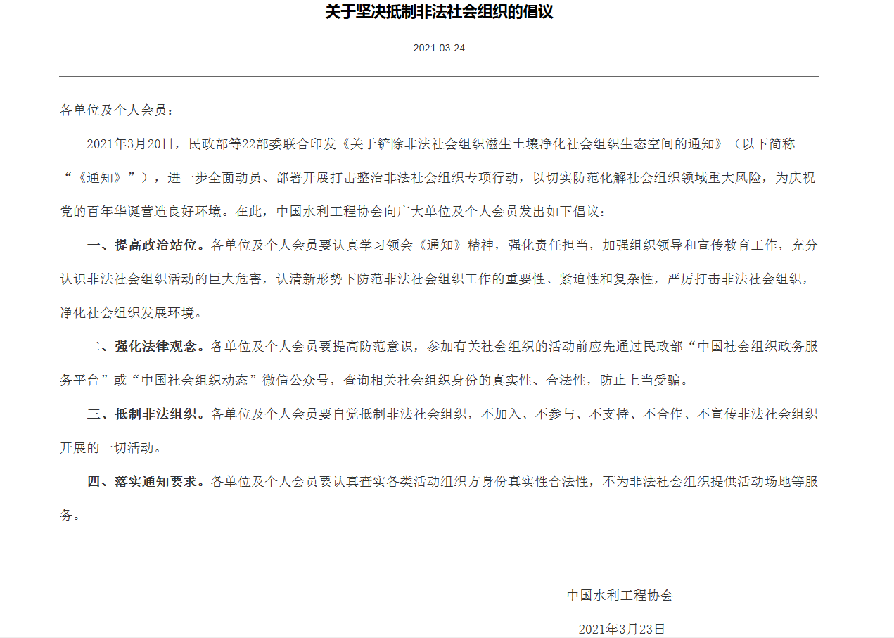 关于坚决抵制非法社会组织的倡议